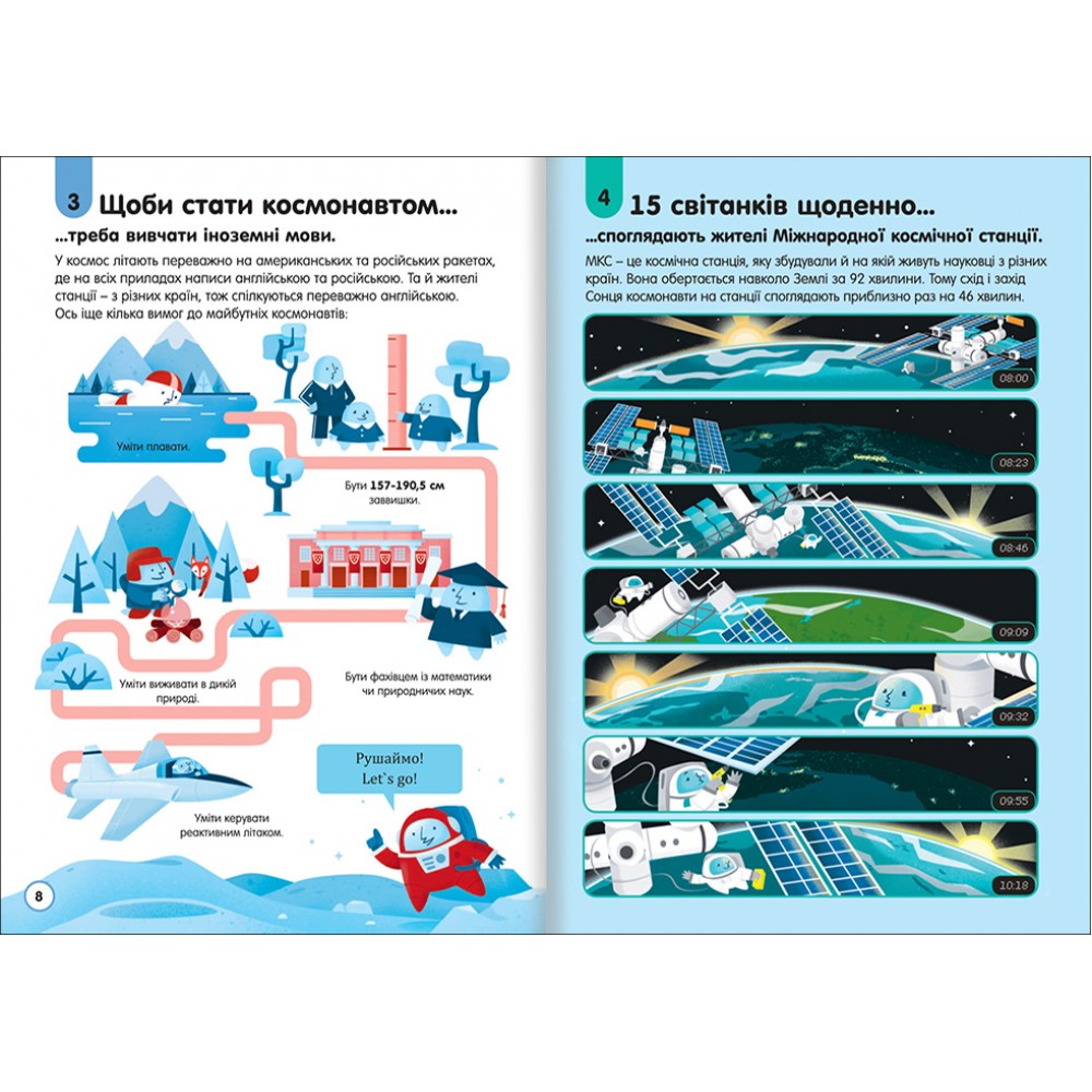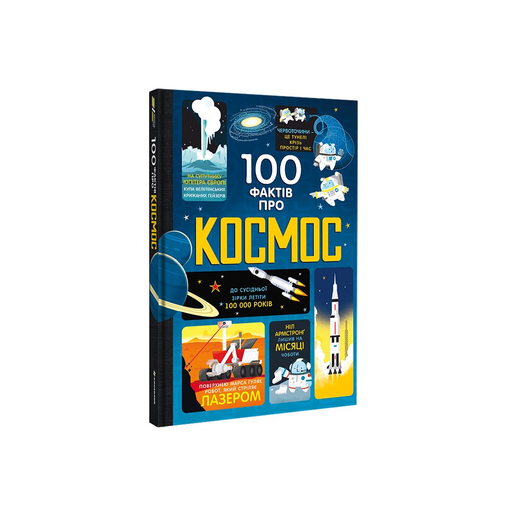«100 фактів про космос» – це наукове дослідження й дотепна пригода. Авторів книжки «100 фактів про космос» можна сміливо називати популяризаторами науки, адже після її прочитання жодна дитина більше не повірить тому, що «Сонечко лягає спати», а зірки можуть падати з неба. Весела, дотепна та дуже змістовна – ця книжка подає відомості про історію вивчення космосу, розташування у Всесвіті Землі, утворення Сонячної системи, дослідження планет роботами тощо. Оперуючи цифрами, використовуючи зрозумілі приклади, «100 фактів про космос» пояснює, що таке гравітація, розповідає про злиття галактик, магнітні бурі та інші явища. Книжка містить цікавинки, про які не дізнаєшся навіть у школі. Скільки сміття на Місяці залишила команда «Аполона-11» після висадки на нього? З чого розпочати колонізацію Марса? Скільки жінок і чоловіків брали участь в польотах за межі Землі? Що робили в космосі плодові мушки й тихоходи? «100 фактів про космос» дивуватимуть як юних читачів, так і їхніх батьків. Книжку рекомендовано для дітей молодшого та середнього шкільного віку.