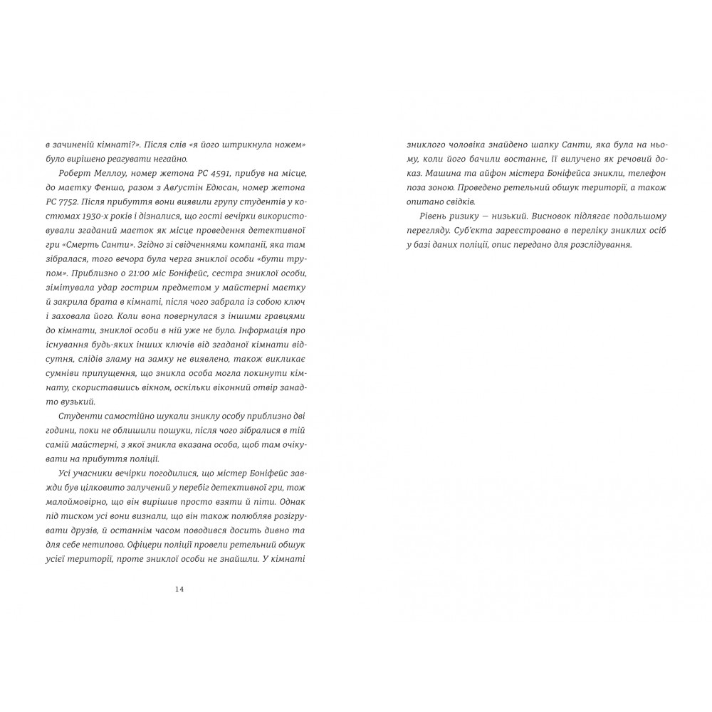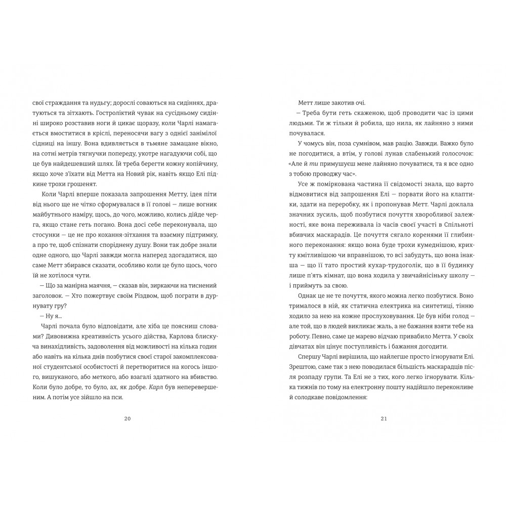 Ця ідея вбивчих маскарадів, така свіжа, нічого подібного раніше не читала. У кожного є шанс спробувати себе в ролі когось іншого, адже занурення в гру виходить 100%, за рахунок переодягання, прописування персонажів до найдрібніших деталей та іншого. Герої навіть спеціально орендують будинок, щоб проводити свої ігри. Ще прикольно, що все це відбувається перед Різдвом, така особлива атмосфера.