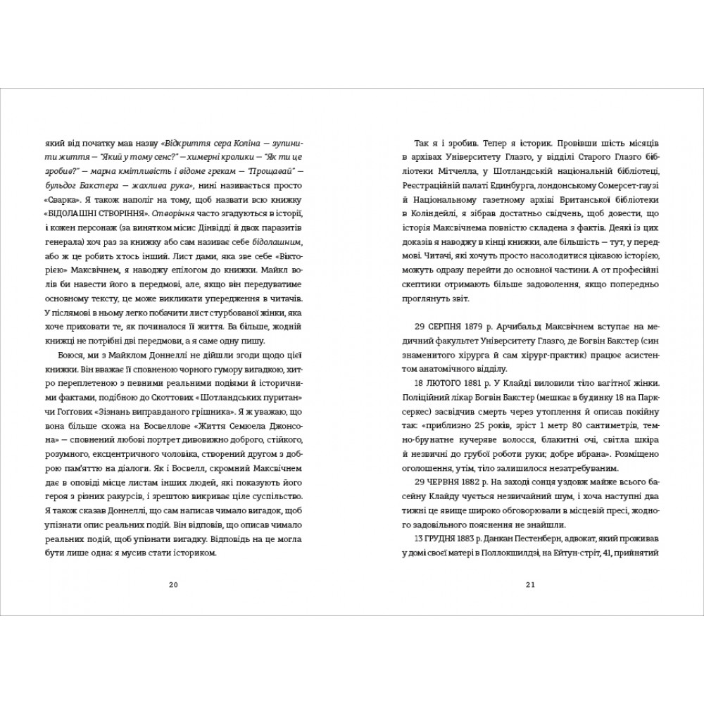 Але «Бідолашні створіння» — постмодерна історія про лікаря Богвіна Бакстера та його творіння — Беллу Бакстер. Про молоду жінку, у якої мозок немовляти. Про амбітну жінку, яка досягає того, чого хоче. Ви поринете у фантасмагорію і зʼясовуватимете, де правда, а де вигадка. Можливо, співчуватимете бідолашкам, які втрапили в скруту. Кататиметеся на гойдалках, які для вас підготував автор, Арчибальд Максвічнем, доктор медицини.