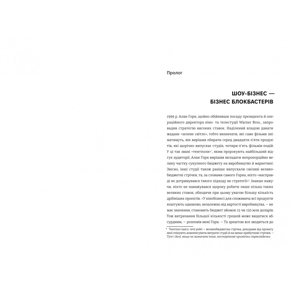 Аніта Ельберс, експертка Гарвардської бізнес-школи з індустрії розваг, проводить новаторські дослідження у світі медіа та спорту вже більше десяти років. У своїй книзі вона пояснює важливу правду про жорстку конкуренцію у світі бізнесу навколо блокбастерів — фільмів, телевізійних шоу, пісень і книг, виробництво та збут яких надзвичайно дорогі.