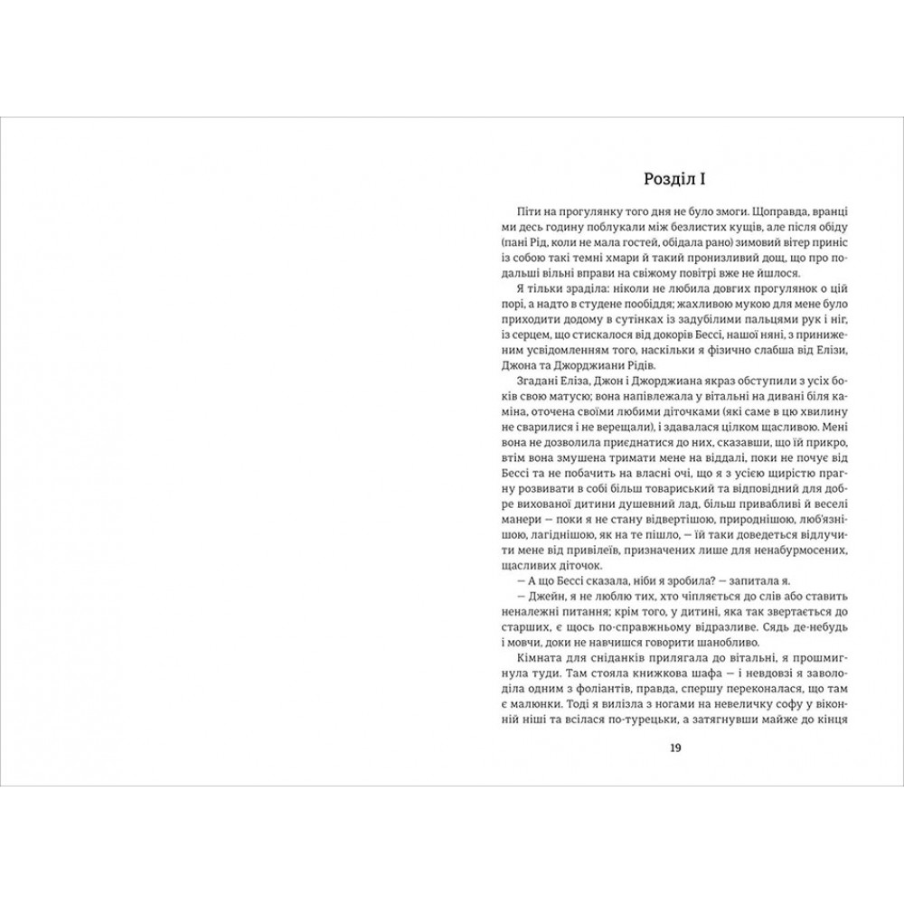 Історія маленької сироти, котра повсякчас стикається із несправедливістю та неприйняттям, впродовж сторіч зворушує серця багатьох. Адже попри всі негаразди героїні вдається зберегти і честь, і гострий розум, і вірність своїм прагненням та переконанням. У дорослому віці, шукаючи кращої долі, Джейн стає гувернанткою і починає нове, майже щасливе життя в Торнфілді. От тільки привабливий та багатий душею господар, містер Рочестер, щось від неї приховує. Роман став метафорою жіночої шляхетності й сили в світовій літературі.