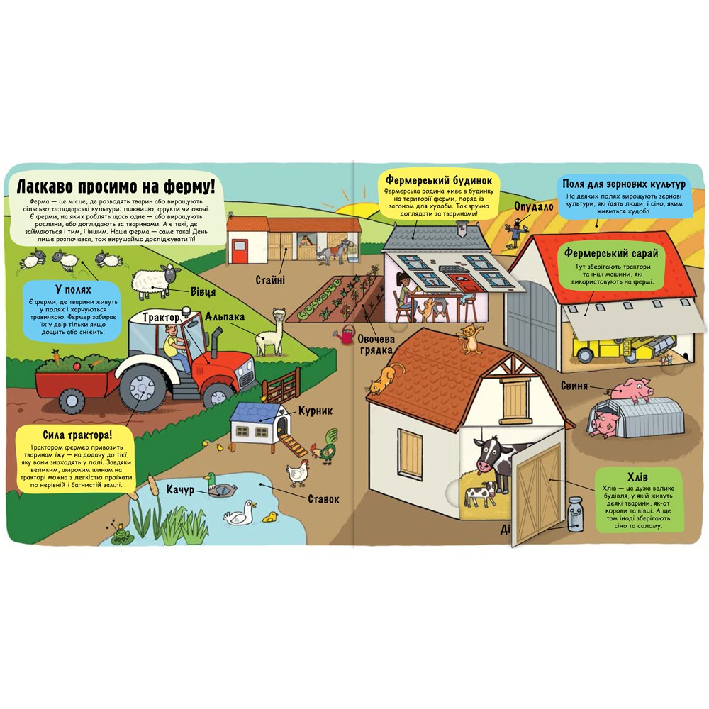 У новому виданні для маленьких дослідників – багато природи, звірів, рослин, різноманітної техніки, у ньому йдеться про всі процеси, які відбуваються на фермі.