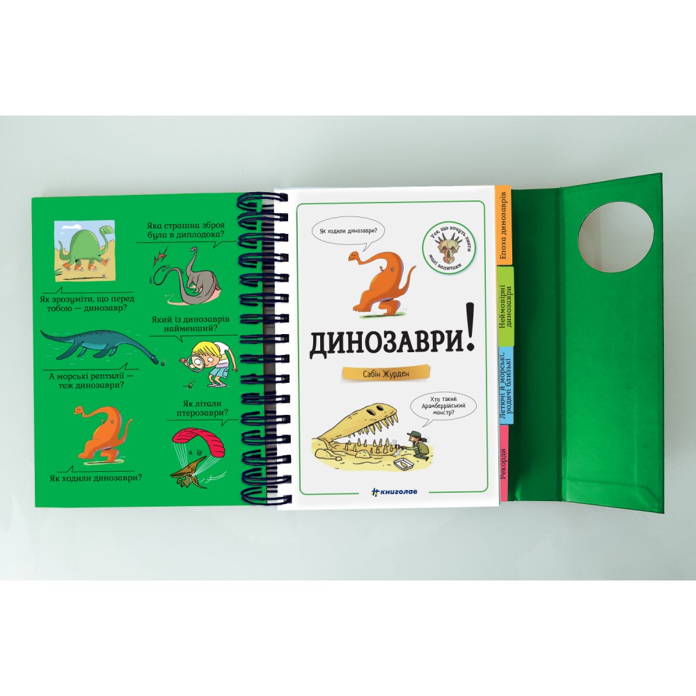 Це видання відкриває перед дітьми дивовижний світ палеонтології. У легкій та доступній формі Сабін Журден пояснює, як динозаври еволюціонували, чим харчувалися, які види були найпоширенішими та чому сучасних птахів вважають їхніми далекими родичами. Діти дізнаються, як вчені досліджують скам’янілості, які знахідки допомогли відкрити нові види та якими були перші відкриття палеонтологів.