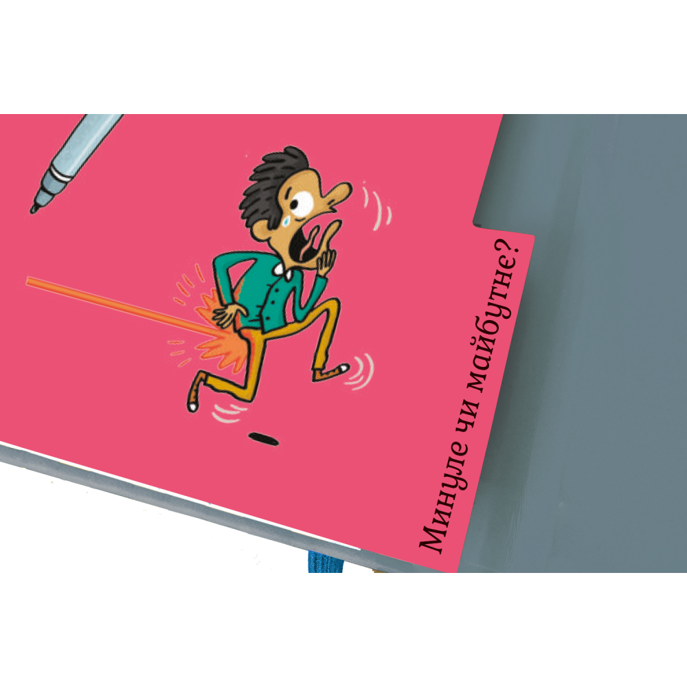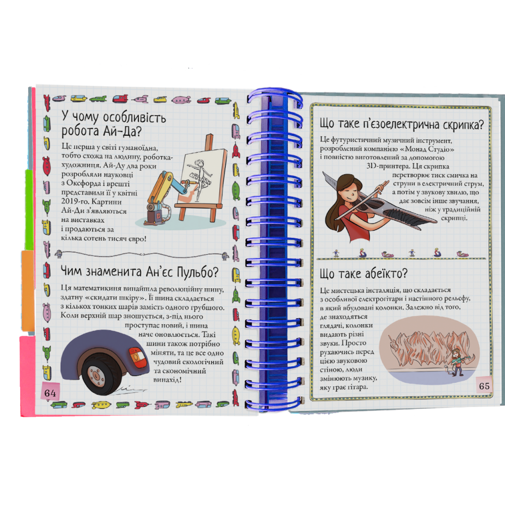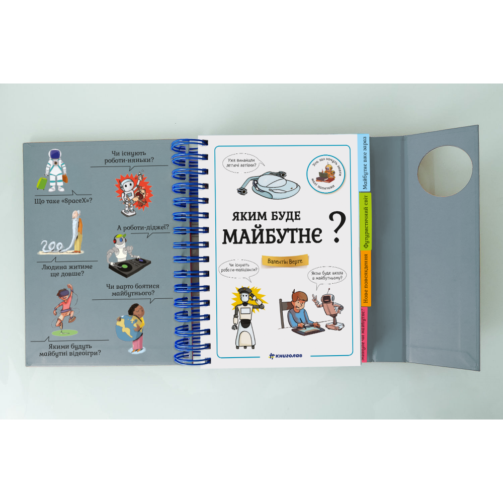Книжка розділена на чотири розділи – про майбутнє вже зараз, футуристичний світ, нове повсякдення та про минулі та майбутні винаходи. Її рекомендовано для спільного сімейного читання – дорослими дітям. Інформація у книжці лаконічна та захоплююча, ілюстрації – кольорові та кумедні, а незвичний формат з пружинкою – для зручного використання.