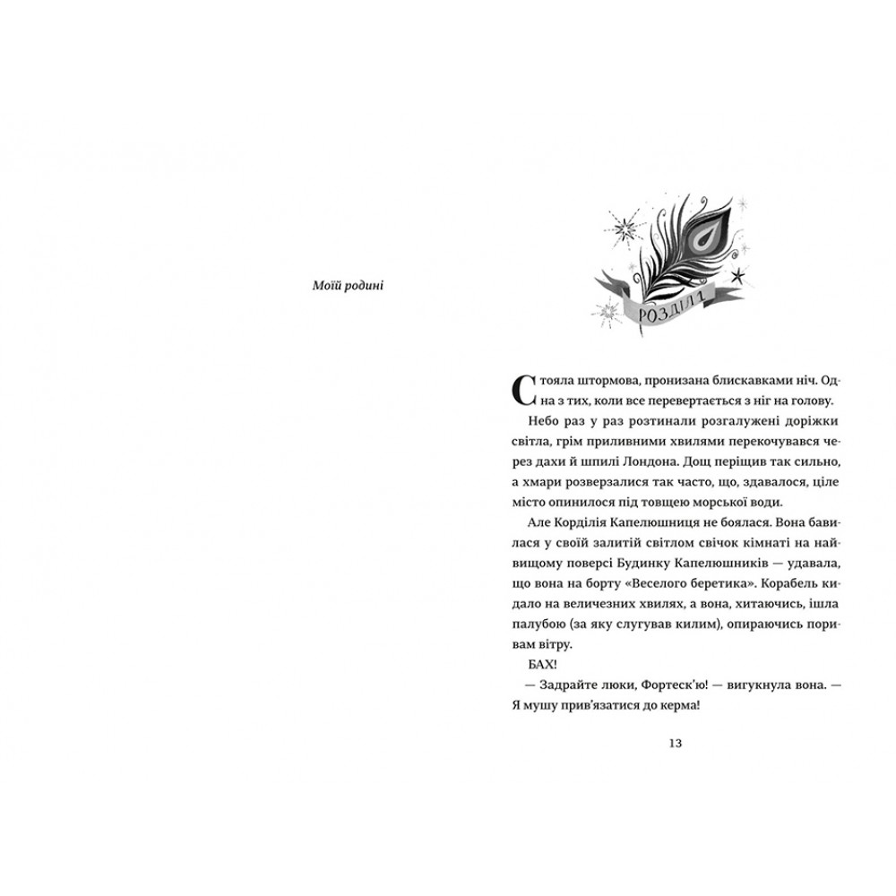 Одинадцятилітня Корділія — наймолодша в сім’ї Чародіїв-Капелюшників. Вона народилася в океані, коли її батьки вирушили на пошуки магічних складників для капелюхомайстрування. Корділія зростає в чарівному будинку серед барвистих тканин, стрічок, пір’їн, мережива та ґудзиків і страшенно хоче змайструвати свого першого капелюха.