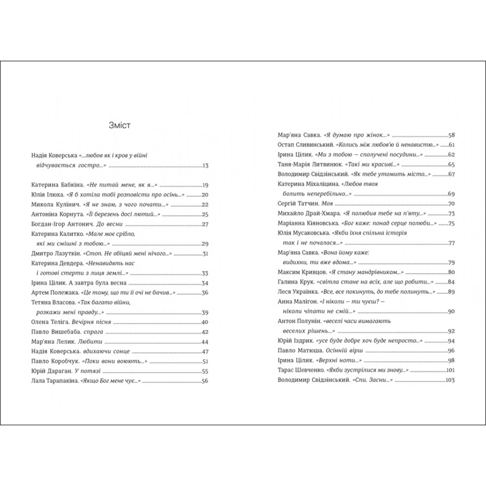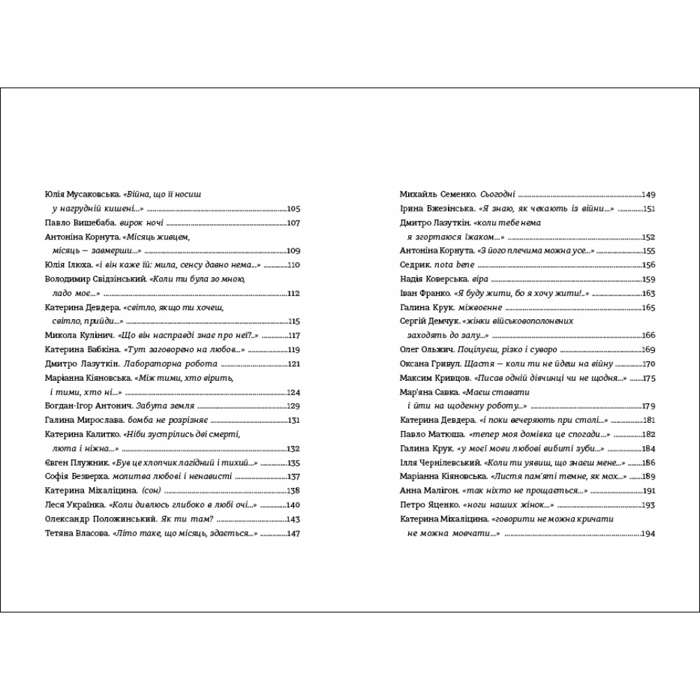 До книжки увійшли твори таких авторів та авторок: