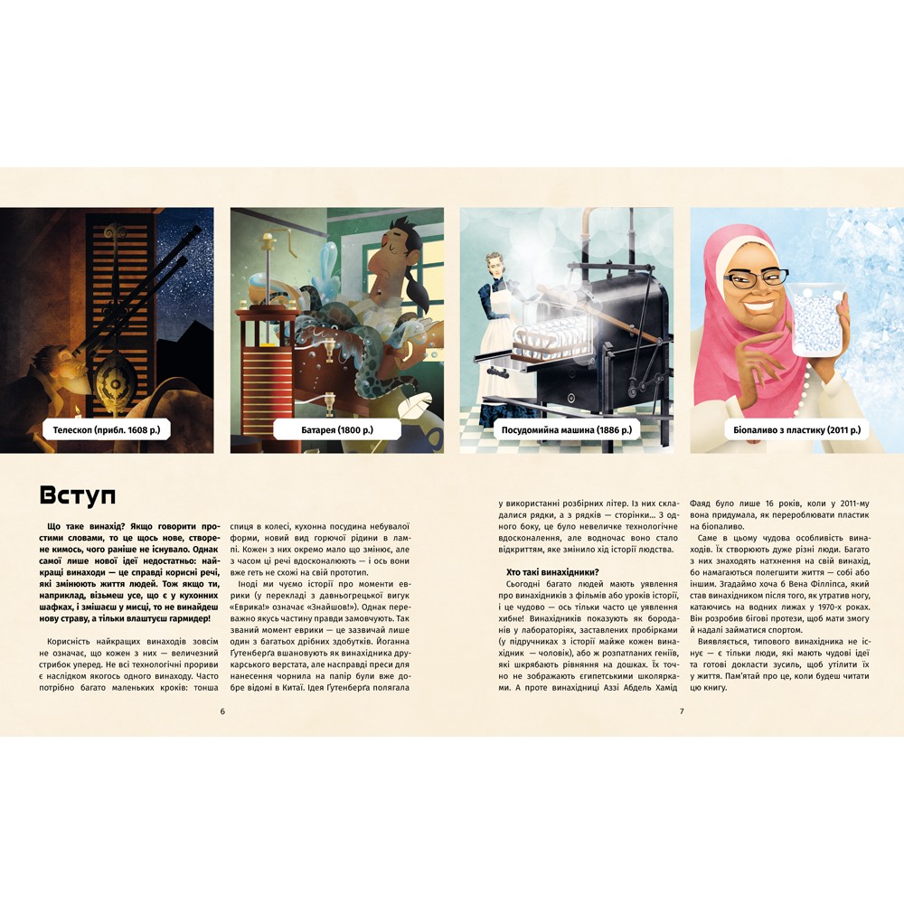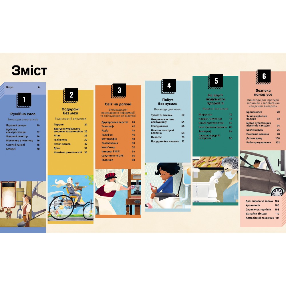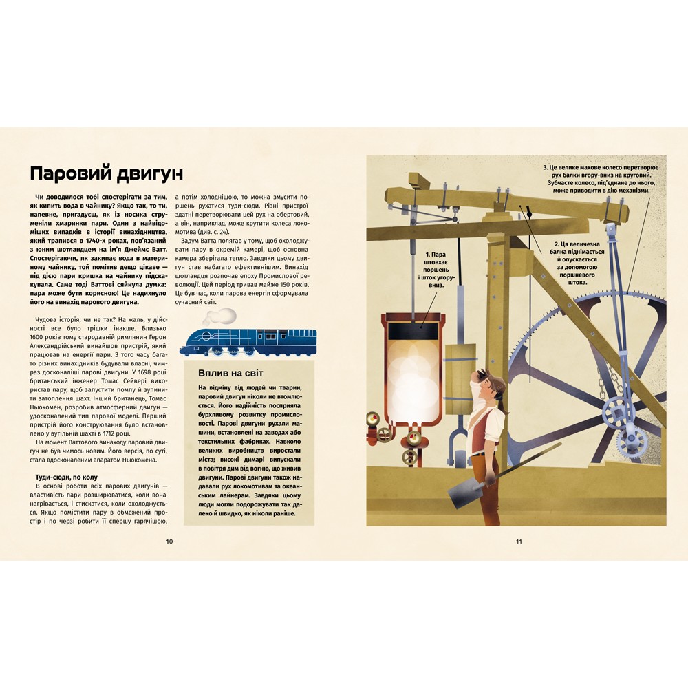 Винаходи мають здатність змінювати наше життя. На маленьких читачів чекають понад 40 найвизначніших досягнень у науці й техніці за всю історію людства — від унітазів до біопалива, від мікроскопів до томографів.