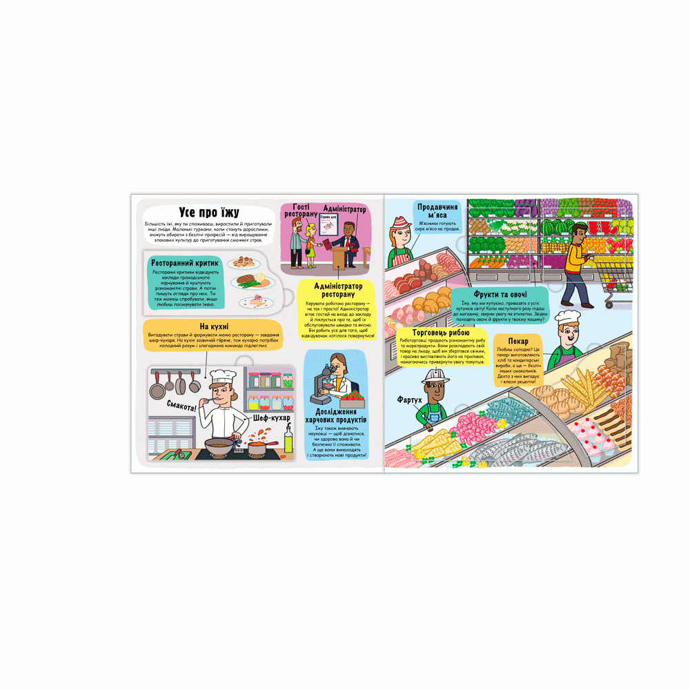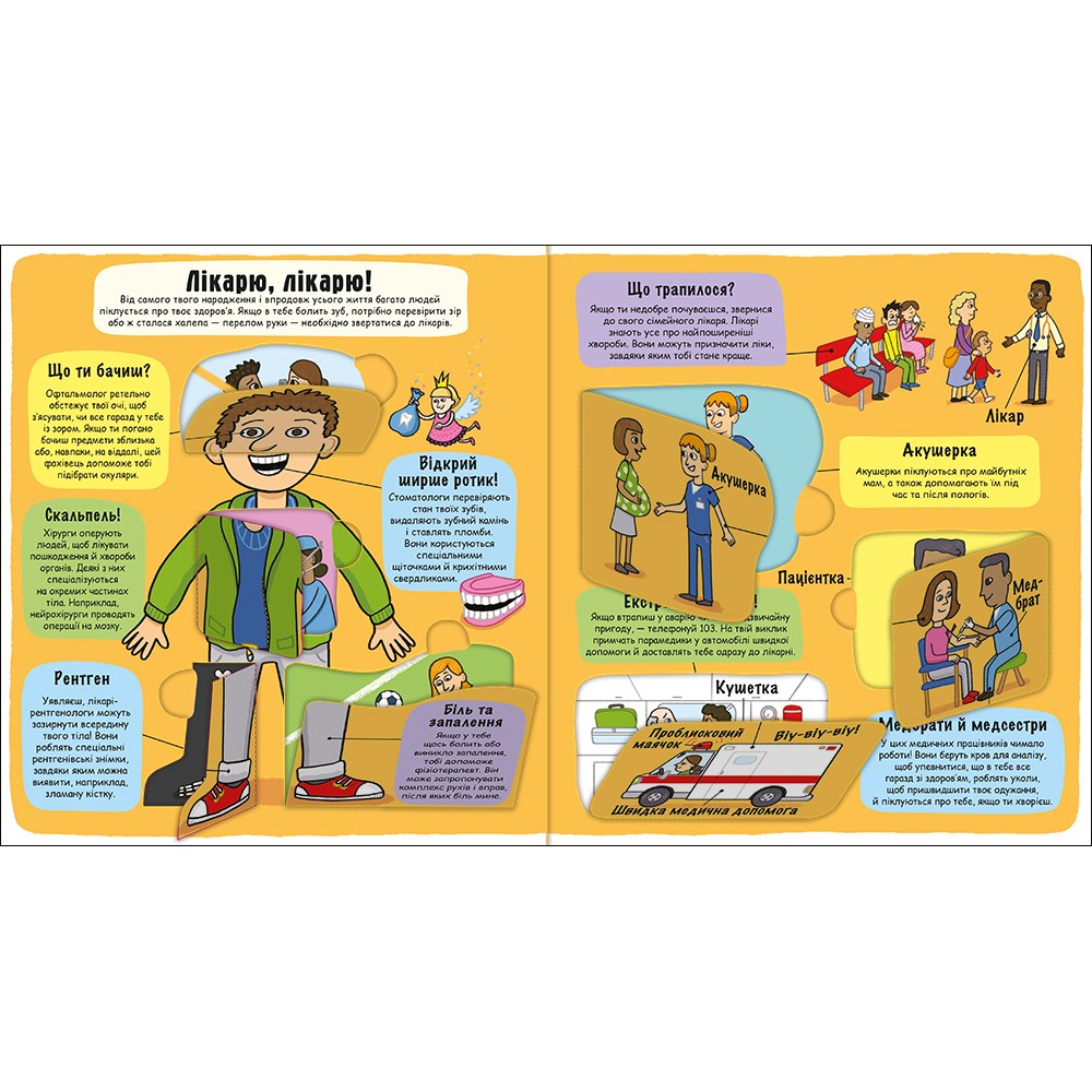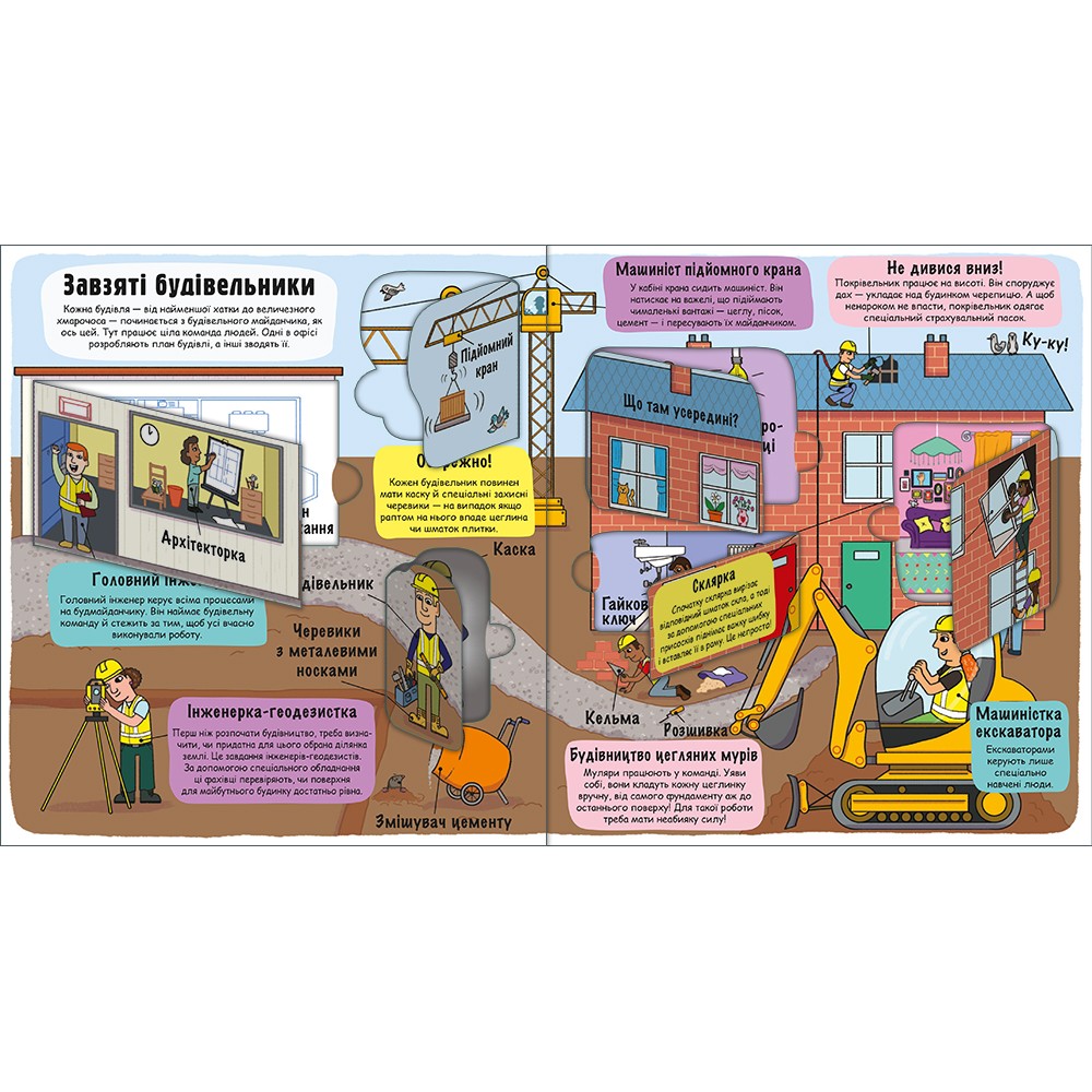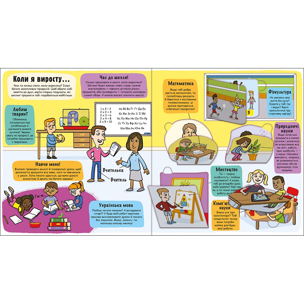 Зрозумілий виклад, яскраві ілюстрації та інтерактивні елементи-віконечка зроблять першу зустріч зі світом різноманітних професій не лише пізнавальною, а й веселою.