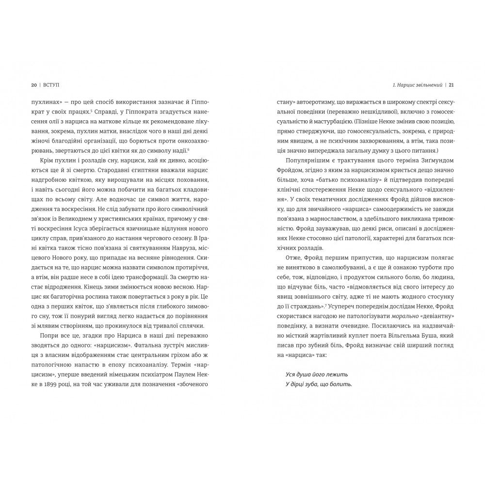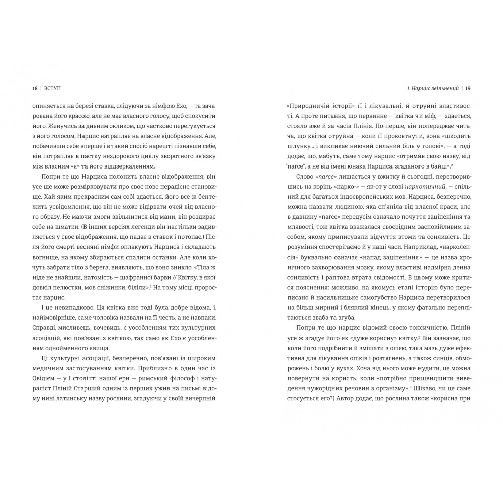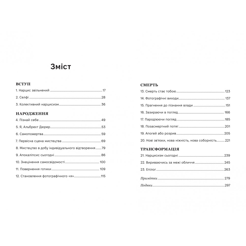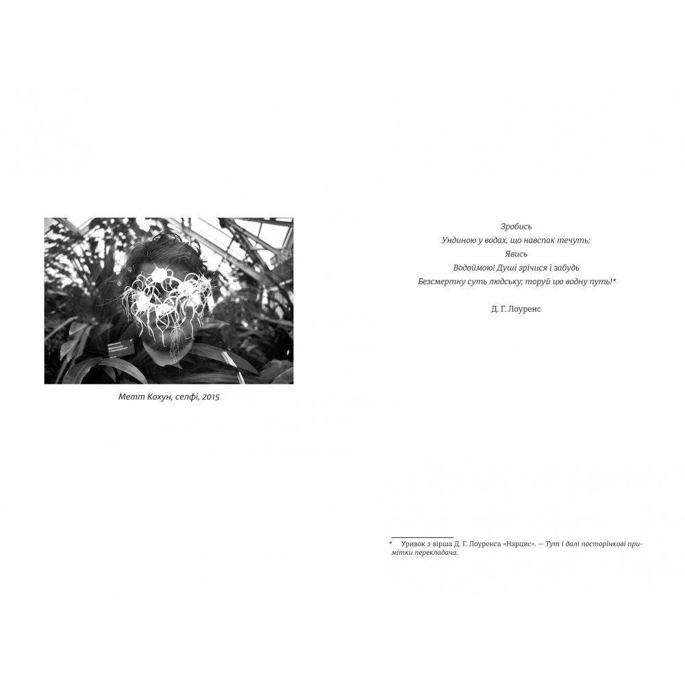 Багато хто каже, що людство потопає в нарцисизмі, що технології зробили нас одержимими собою і ця тенденція всіх погубить. Британський автор Метт Кохун пропонує альтернативне бачення нарцисизму й селфі через повернення до первісного міфу про Нарциса й однойменну квітку, заперечуючи моралізаторство культурної критики про те, що зацикленість людства на собі призведе до його загибелі. Автор змушує задуматися, чи не є селфі вираженням прагнення до трансформації? І ким людина може стати, скинувши маску? Через фотографії й автопортрети автор досліджує явище нарцисизму, стверджуючи, що питання суб’єктності турбувало людей повсякчас.