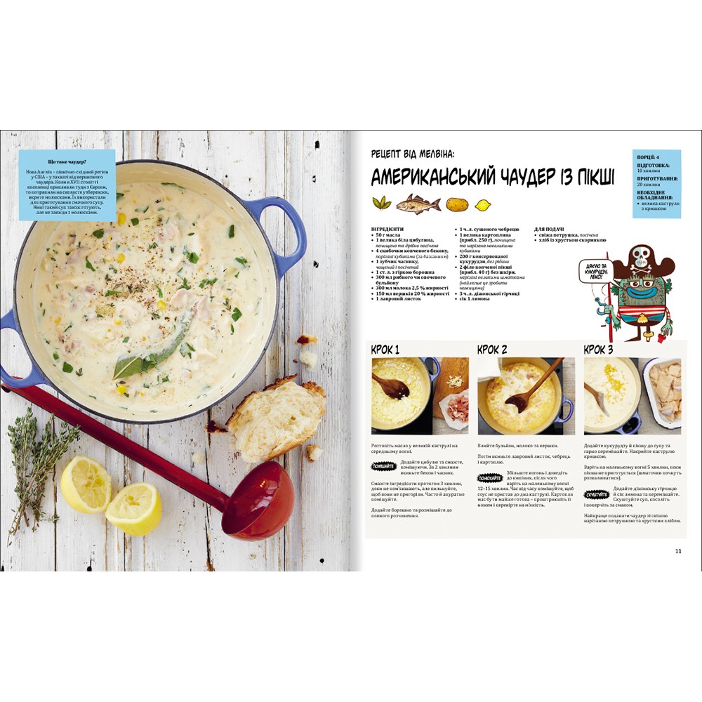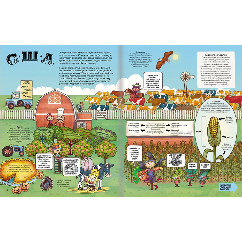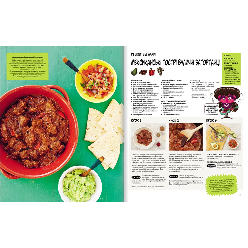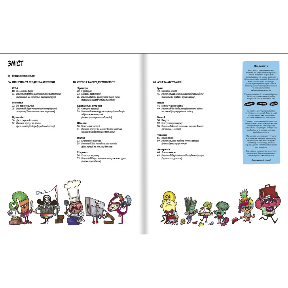 Що буде, якщо поєднати географію, кулінарію та безліч цікавих фактів про продукти, їхню історію та виробництво? Вийде захоплива книжка з рецептами для усієї родини. Автори видання, Зої Бейзер і Джо Шарп, вигадали цілу команду інгридиків – відважних дослідників їжі. Разом із ними дорослі й малі читачі вирушать у подорож континентами та країнами у пошуках дивовижних смаколиків. Південна Америка, Європа та Середземномор’я, Азія та Австралія – звідусіль можна привезти рецепти, які урізноманітнять щоденний раціон родини. Мексиканські гострі вуличні загортанці, сирно-цибулевий пиріг із Британських островів, тайська овочева веселка та ще багато екзотичних, але легких у приготуванні страв, можуть з’явитися на вашому столі, якщо будете уважно виконувати рекомендації інгридиків, а головне – готуватимете усією родиною.