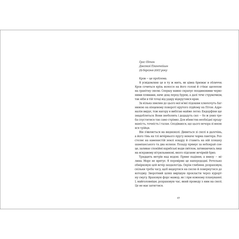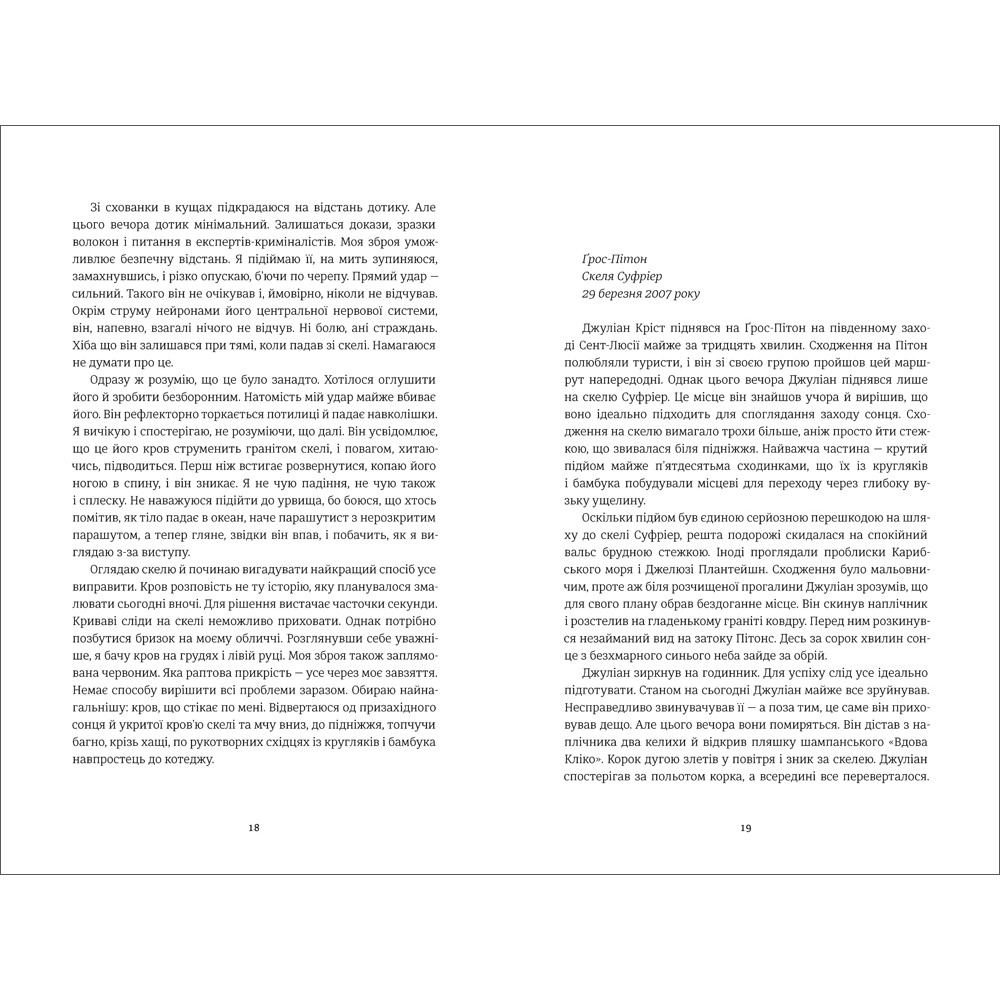 Цікавий сюжет, книга весь час неначе тебе обманює, веде тебе, здавалось би, абсолютно логічною стежкою, і під час читання ти думаєш що все зрозуміло, але дві останні частини перевертають все з ніг на голову, залишають по собі ще більше питань, ніж виникало під час прочитання. Фінал умовно відкритий, частково дає тобі відповіді, але в той же час залишає питання відкритими.