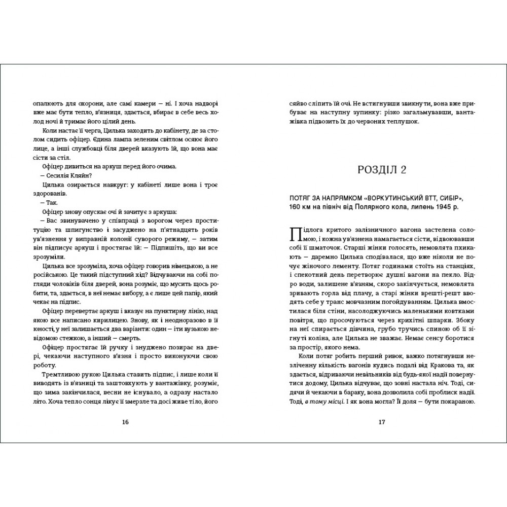 «Подорож Цильки» — це роман про Сесилію Кляйн, дівчинку, яку в шістнадцять років вислали в концтабір Аушвіц. У нелюдських умовах її врода та характер стали для неї порятунком і водночас прирекли на нові випробування. Після звільнення Аушвіцу дівчину за так звану колаборацію з ворогом висилають у Сибір. Цильці доведеться подолати нелегкий шлях, щоразу знаходячи в собі сили, про які ніколи не здогадувалася.