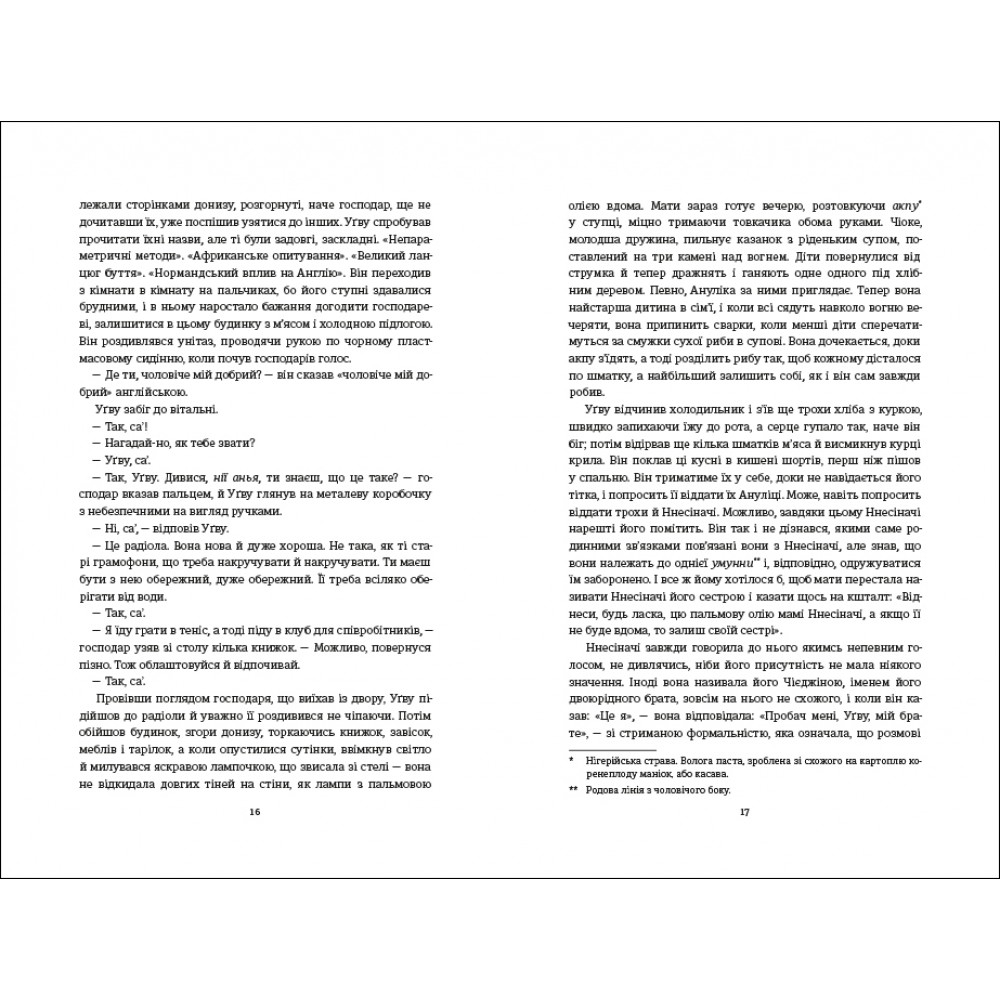Варто зазначити, що це аж ніяк не романтизований і легкий твір про африканську країну та війну. Варто бути готовими до того, що багато сюжетних ліній вразять до болю. Картини, змальовані у книзі, яскраво відгукуються тим, що ми переживаємо на українських теренах.