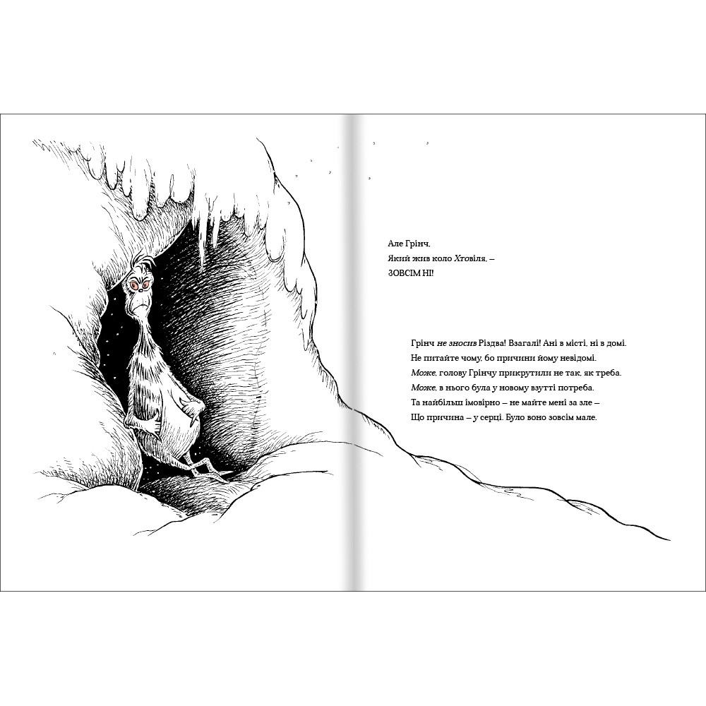 Українською книжка вийшла у перекладі Мар'яни Кіяновської з авторськими ілюстраціями Доктора Сьюза. «Про Грінча, який украв Різдво» сподобається читачам від трьох років.