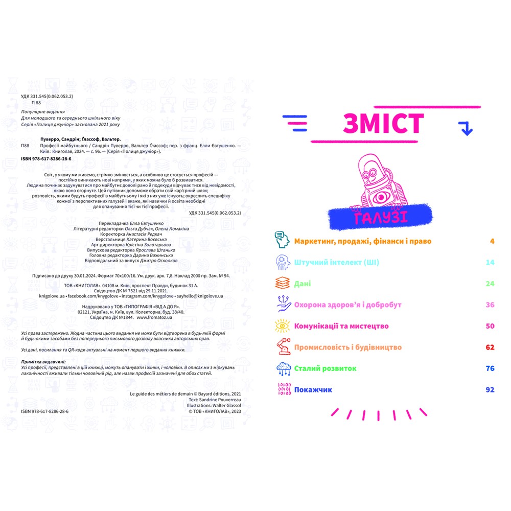 «Професії майбутнього» — це путівник, що допоможе підліткам обрати свій кар’єрний шлях; розповість, якими будуть професії в майбутньому і які з них уже існують.