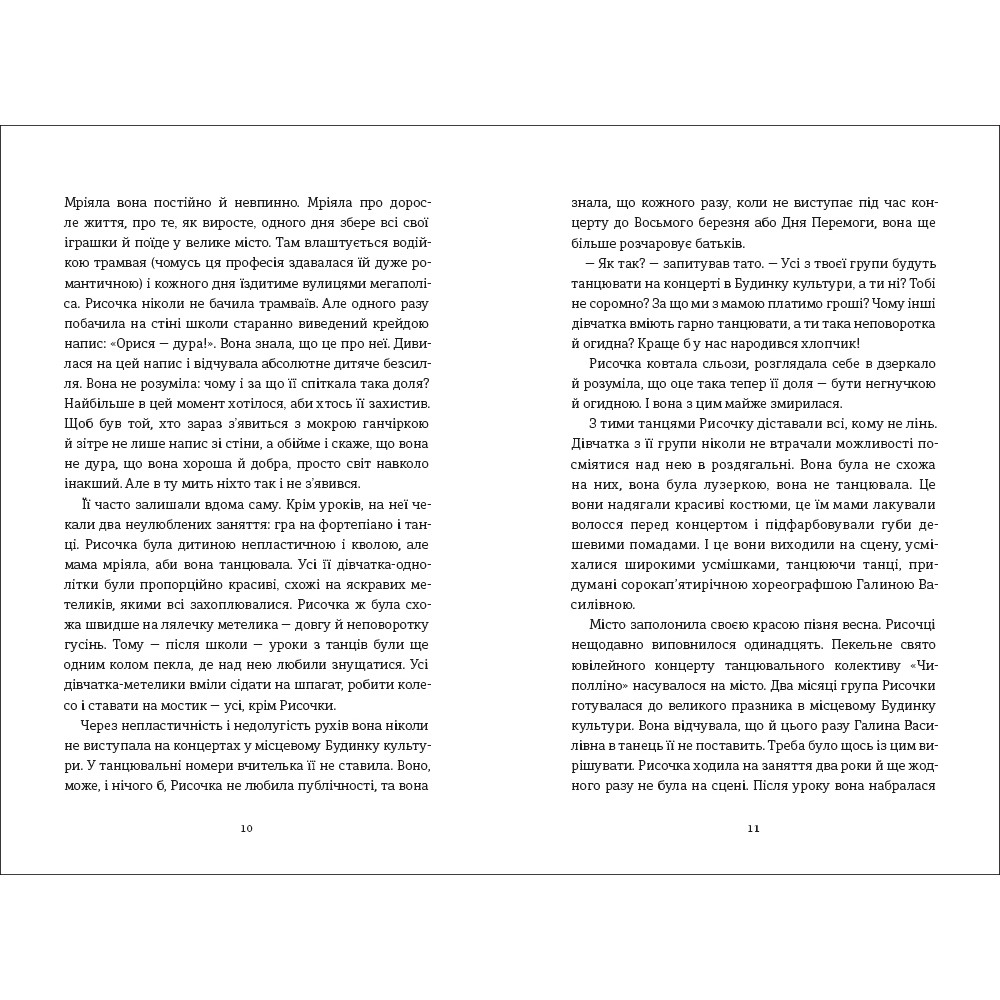 Ця книжка про дорослішання і здійснення дитячих мрій, постійний діалог зі своєю внутрішньою дитиною. Про пошуки себе у великому світі і намагання зрозуміти, що є справжнім щастям. Ця книжка про біль і радість, які дарує нам любов, про неприйняття, про щирість. Про те, що життя не є чорно-білим, про руйнацію стереотипів. Ця книжка про всіх, хто шукає свій дім.