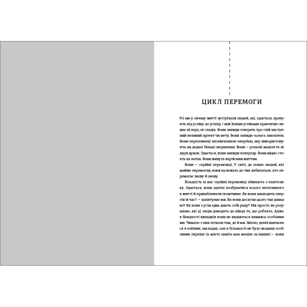 Як знайти енергію і час для нових ідей? Чому одним з нас вдається приваблювати успіх, а іншим – ні? Що є запорукою досягнення надмети? Відомий фінансовий консультант Леррі Вайдел дає відповіді на ці запитання, використовуючи досвіди мільйонерів, спортсменів і супер-бізнесменів.