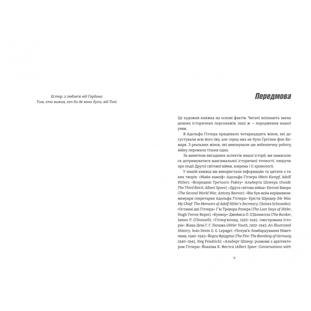 «Смак ворога» — це вигадана історія однієї з них, молодої німецької дівчина з аристократичної родини — Ґретхен фон Бісмарк, наділеної надзвичайним смаком і нюхом. Вона стала довіреною членкинею дегустаторок та через свого батька-архітектора зв’язалася з Альбертом Шпеєром, архітектором Гітлера та міністром озброєнь і військового виробництва.