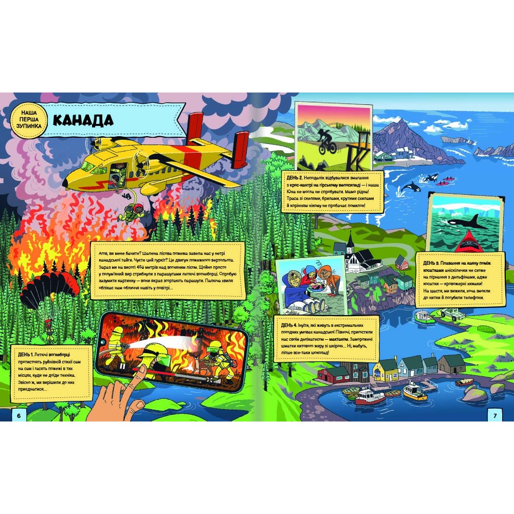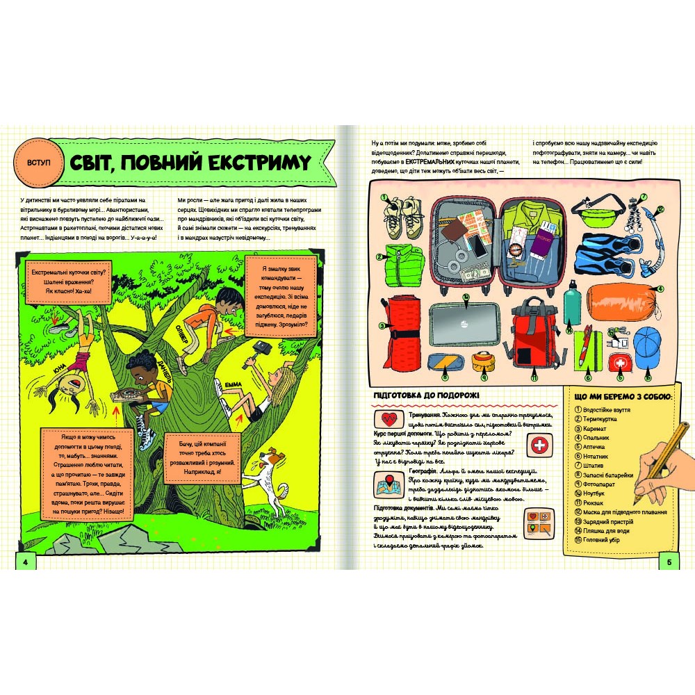Це кольорове видання для відчайдушних юних читачів, які люблять і шукають пригоди. З чотирма героями цієї книжки можна потрапити в найекстремальнішу мандрівку світом. Вони побувають у різних країнах та на різних континентах, де мешкають отруйні істоти, ростуть неприступні рослини, знаходяться таємничі печери, вулкани, де бувають торнадо, де екстремальні температури,бездонні урвища та ще багато інших небезпек. В такі місця точно не потрапляють туристи.