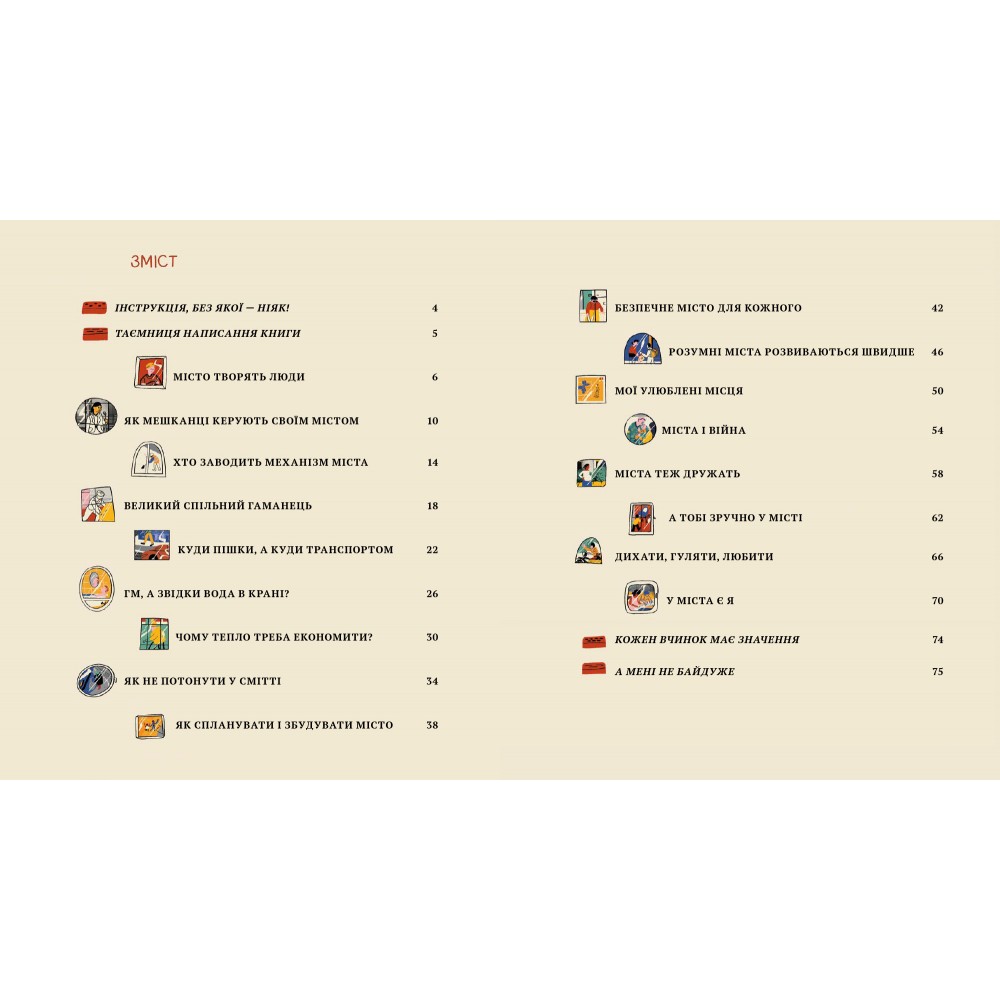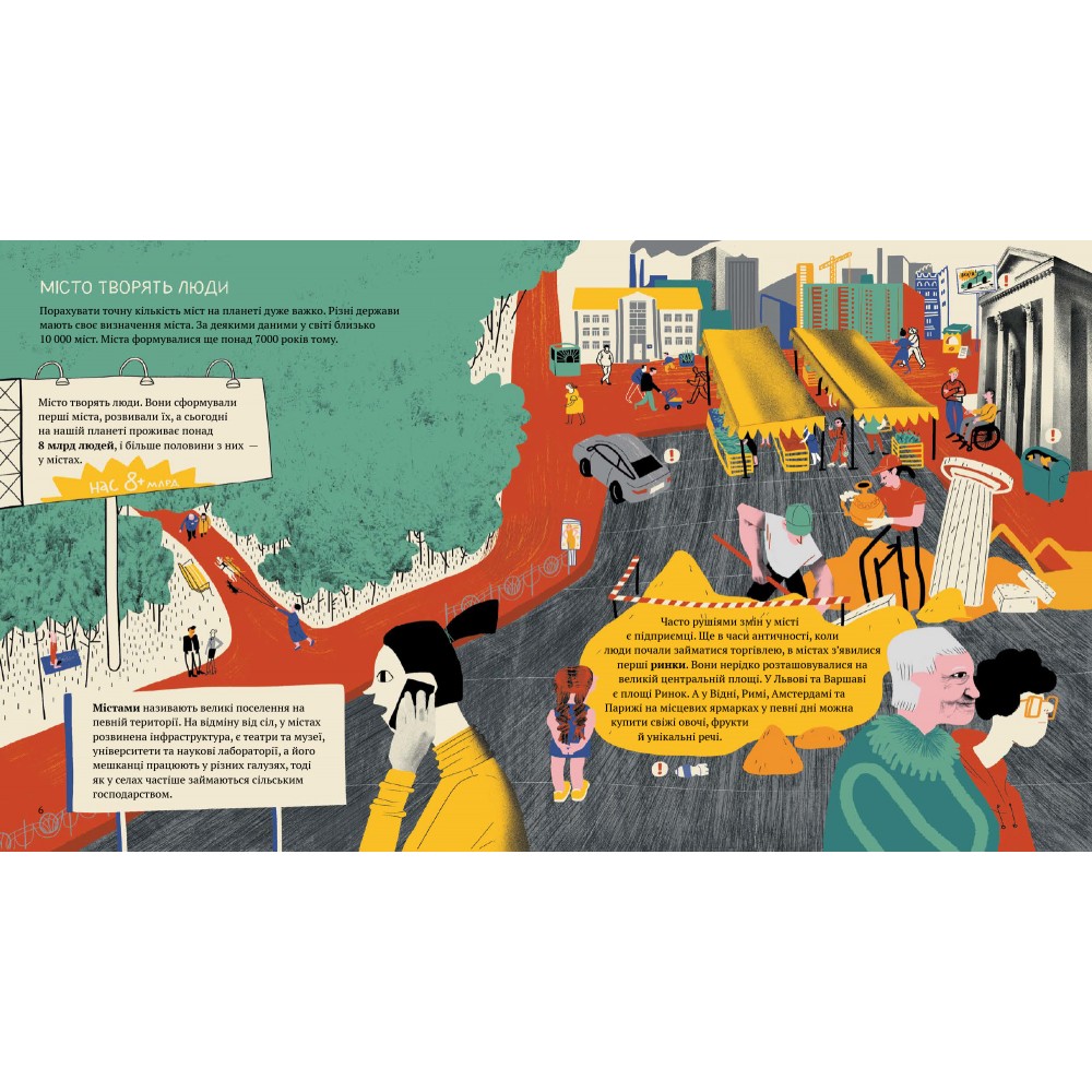 Авторка Ірина Озимок, що залучена у численних проєктах та ініціативах з урбаністики, разом з ілюстраторкою Анною Іваненко з візуальної студії «сері/граф» яскраво, цікаво та захоплююче розповідають про життя міста: як воно функціонує, як на нього впливають технології, споживання, клімат і комп’ютерна революція, та яка роль людини в цьому.