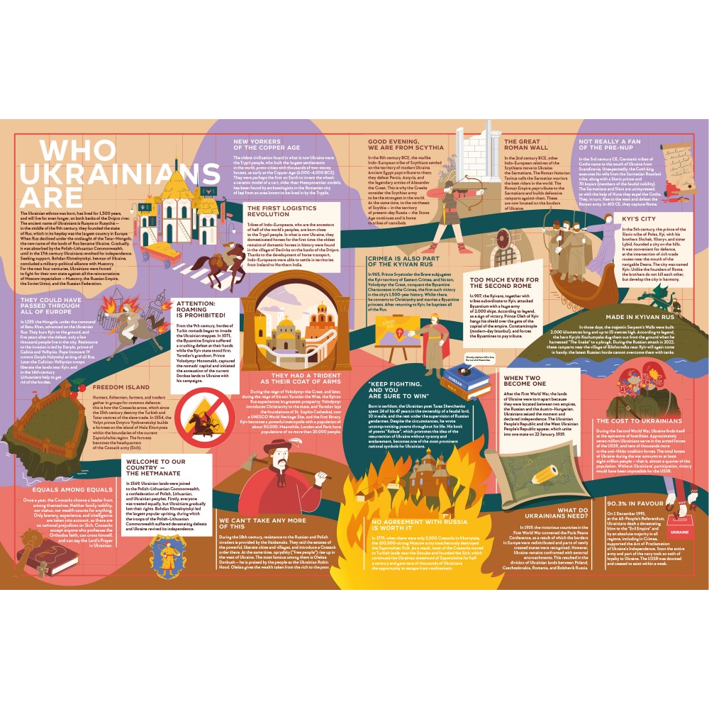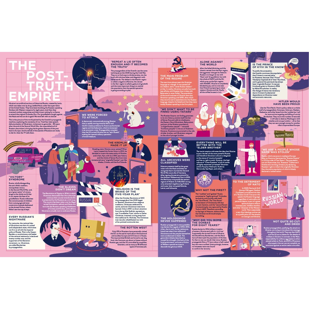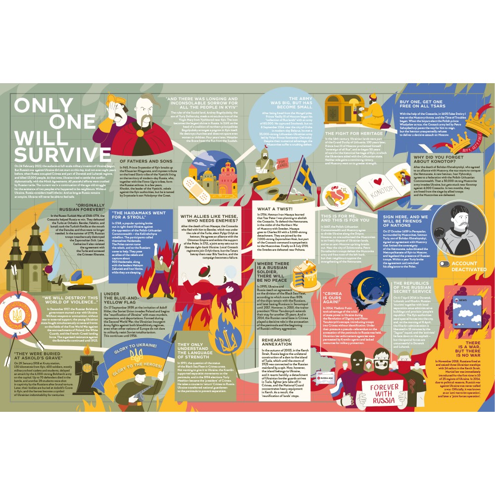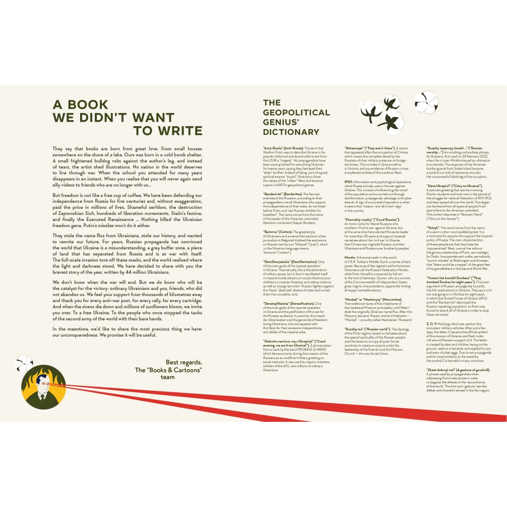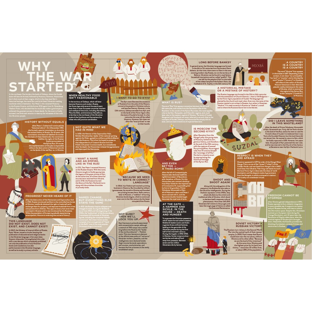 550 facts about the course and consequences of the year of the bloodiest war since the Second World War. A short and simple form of presentation, dynamic illustrations, and subtle humour: the format is designed for a wide audience of readers, who want to understand what is really happening in Ukraine and why not just the fate of one state on the eastern border of the European