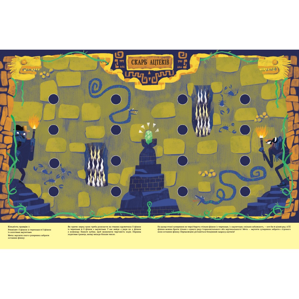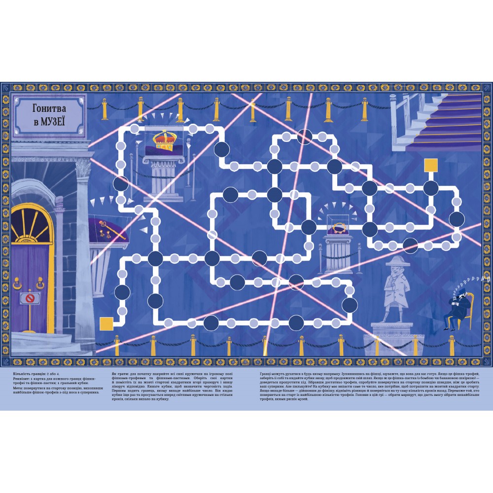 Ця книжка сповнена дивовиж і пасток. Вона легко перетворюється на низку великих ігрових полів, доповнених реквізитом із сімдесяти ігрових деталей. Тож вона є чудовим надбанням для веселого дозвілля!