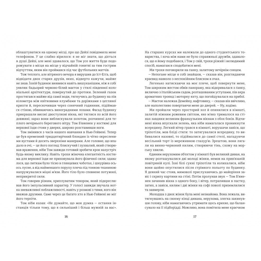 «Великий Ґетсбі» — роман американського письменника Френсіса Скотта Фіцджеральда, що підкорив серця мільйонів людей. Події цієї історії відбуваються у двадцятих роках на території Америки на початку великої та шаленої «епохи джазу».