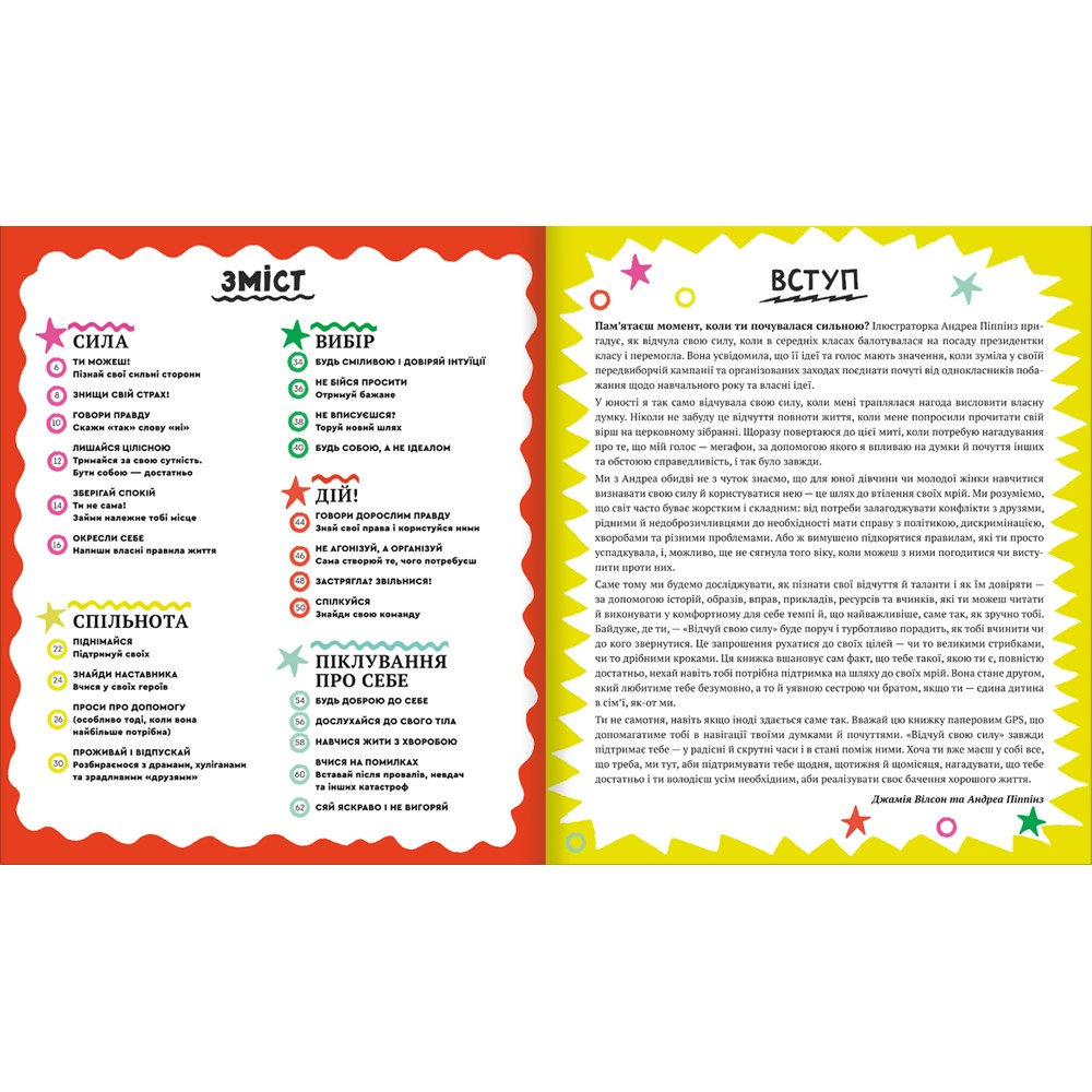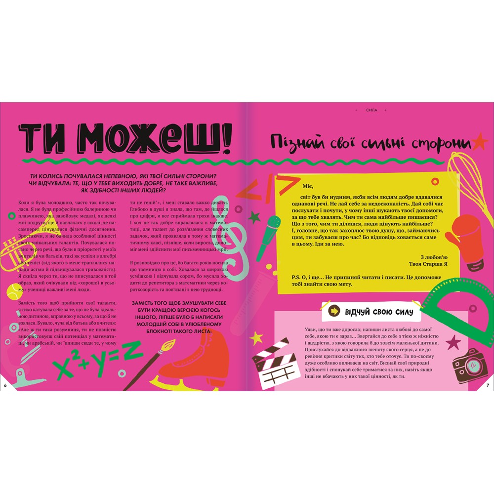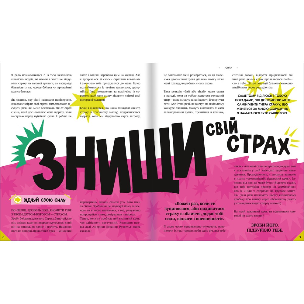 Яскрава і надихаюча, ця книжка-порадниця стане підтримкою для всіх дівчат, які перебувають на початку свого становлення, у період, коли вже не хочеться, щоб тебе вважали дитиною, у період перших протестів і заяв, перших закоханостей, пошуку своїх орієнтирів. Вона допоможе встановити свої межі, впоратись зі страхами та невпевненістю, наважитися бути собою і, можливо, навіть змінити світ.