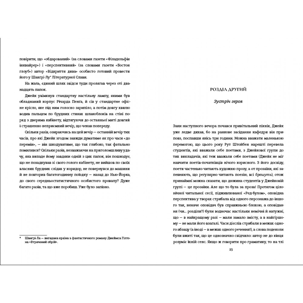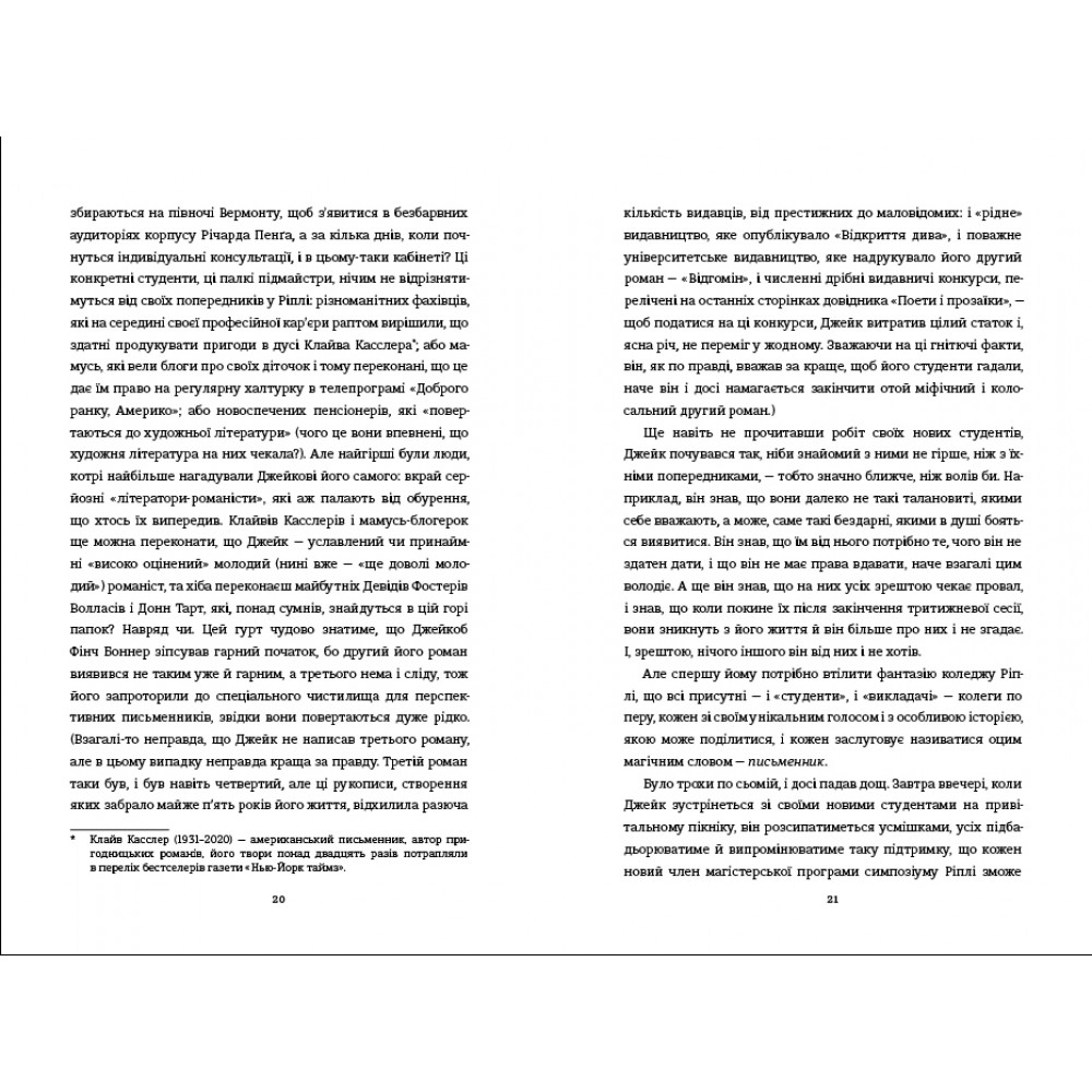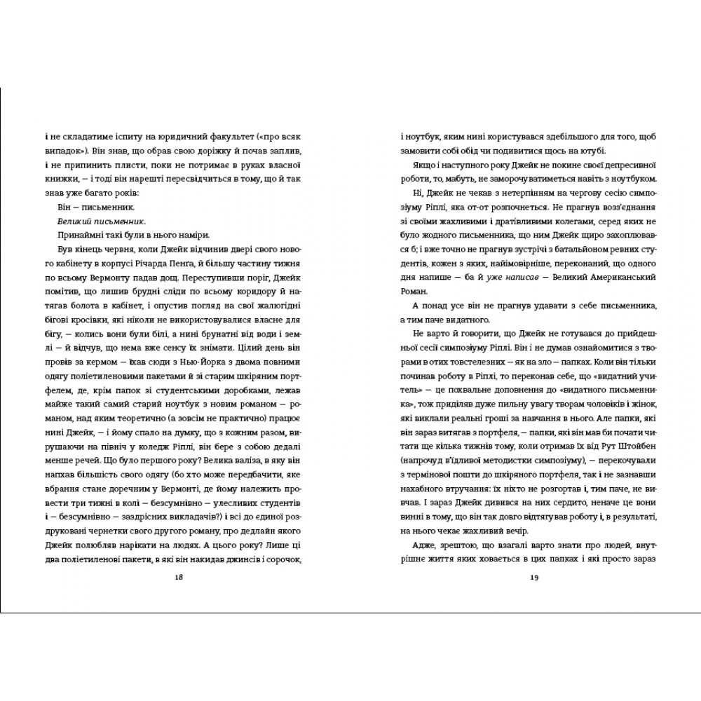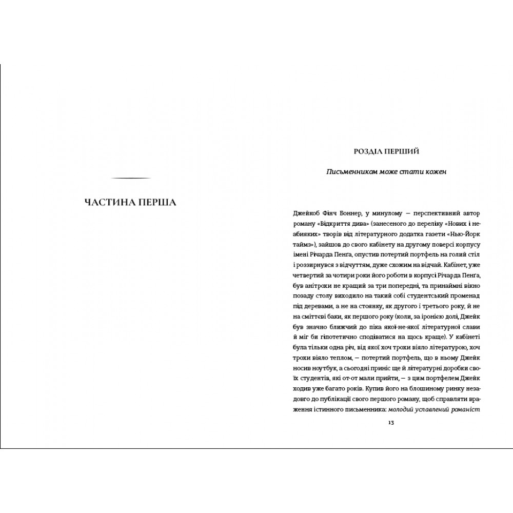 У книзі читачі занурюються у таємничу історію головного героя та дізнаються про непростий, але заманливий світ письменників, які прагнуть розповісти свою історію світу, шукають натхнення, ідеї для сюжету, долають творчі та кар'єрні кризи, ризикують “запозичити” задум для написання книжки, щоб здобути омріяну популярність.