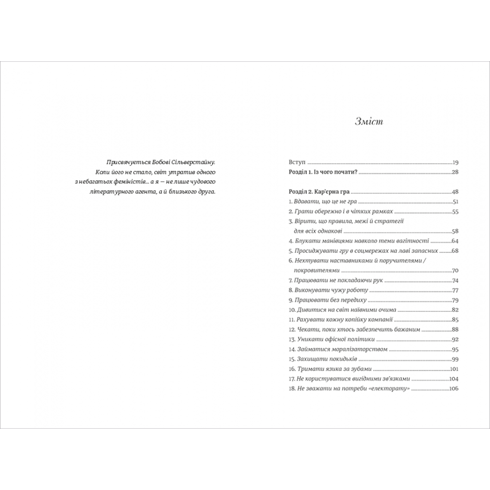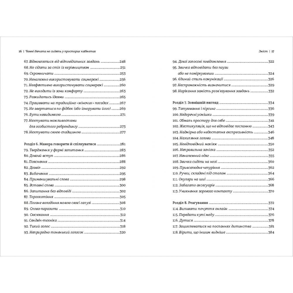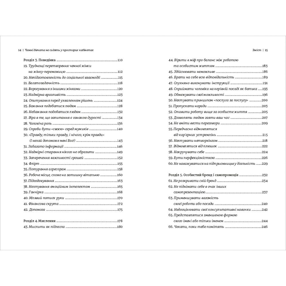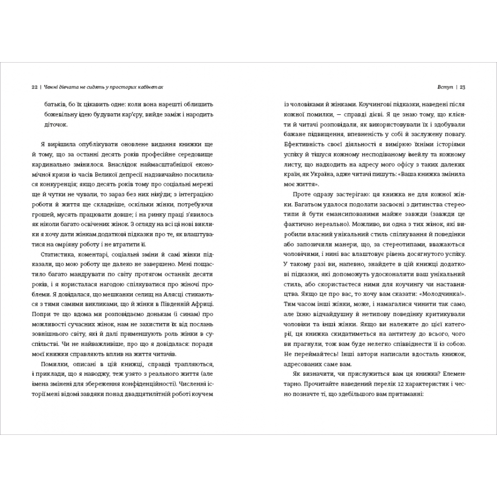 Авторка цієї книжки розглядає 133 помилки, яких жінки припускаються у роботі та пропонує способи, як їх уникати надалі. Поради Лоїс Френкел будуть корисними для того, щоб розвинути сміливість, впевненість, продуктивність, наполегливість – ті навички, які допоможуть отримати належний результат у професійній діяльності. Вона пояснює, як поводитися в тих чи інших робочих ситуаціях, як будувати особистий бренд, як спілкуватися, одягатися і реагувати. Але ці рекомендації актуальні не тільки для жінок, а й для чоловіків.