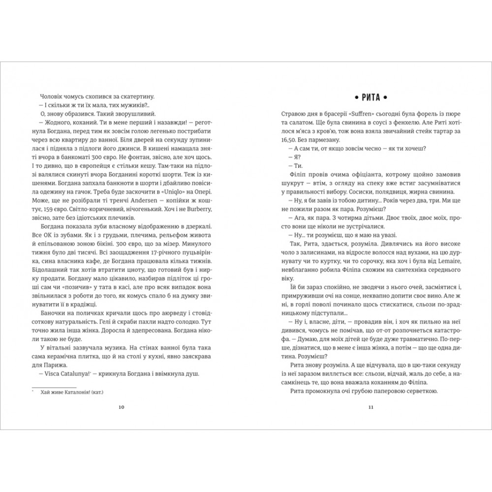 «Роман писався три роки, вбираючи в себе реальні історії реальних жінок. Через це в ньому нема ні повністю позитивних, ні повністю негативних героїнь, а є різні психотипи, де кожна читачка знайде себе. Хтось буде бісити, хтось смішити, хтось змусить плакати. Бо в книзі є все: фешн, секс, стиль життя, зрада, втеча, пошук себе, вбивство, інтрига, смак вина і багато-багато Парижа. Хтось їздить на Астон Мартині, а хтось краде монетки, залишені офіціантові на чай. В певний момент долі цих моїх жінок переплітаються, і так — не читайте кінець відразу, щоб не спойлити, хто вбивця. Я люблю їх всіх. У кожній із них є часточка мене. І часточка вас. Тому сміливо пірнайте», – коментує Ірена Карпа, письменниця.