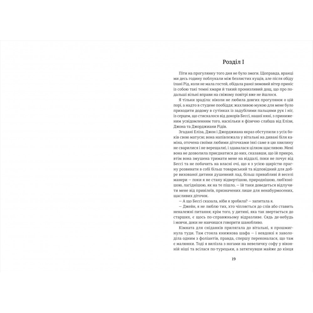 Історія маленької сироти, котра повсякчас стикається із несправедливістю та неприйняттям, впродовж сторіч зворушує серця багатьох. Адже попри всі негаразди героїні вдається зберегти і честь, і гострий розум, і вірність своїм прагненням та переконанням. У дорослому віці, шукаючи кращої долі, Джейн стає гувернанткою і починає нове, майже щасливе життя в Торнфілді. От тільки привабливий та багатий душею господар, містер Рочестер, щось від неї приховує. Роман став метафорою жіночої шляхетності й сили в світовій літературі.