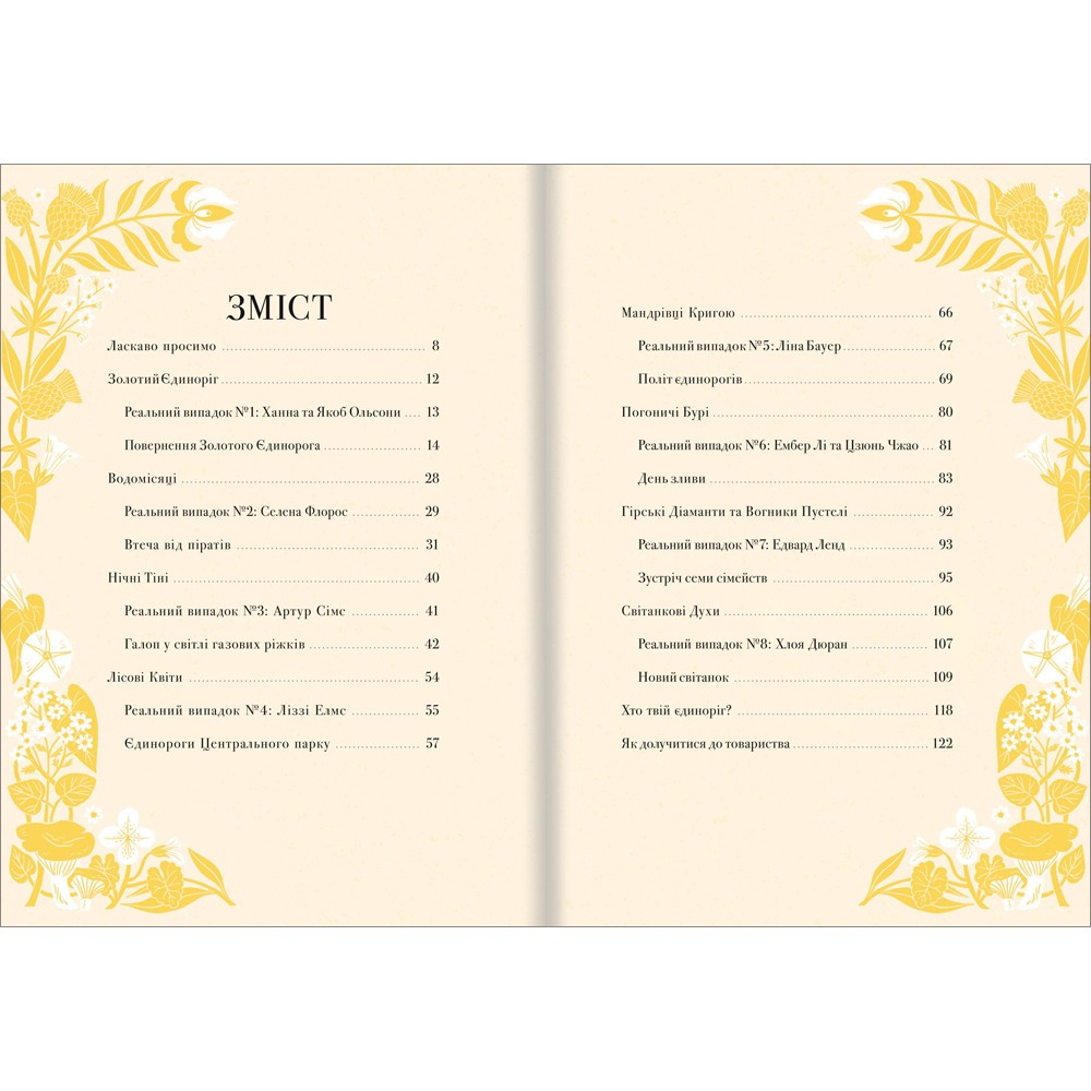Книга складається з восьми історій про єдинорогів та їх зустрічі з людьми. За легендою, цю книгу склав Селвін Фіппс, директор товариства «Магічний єдиноріг». Подробиці кожного конкретного випадку він по крихті збирав в архівах центрального офісу в Лондоні — зі старезних щоденників, польових звітів, газетних вирізок і записів легенд, що передавались усно з 1577 року з покоління в покоління. До кожної легенди додаються короткі досьє, у якому є вид єдинорога, а також інформація про поважного члена товариства чи легендарну особу, яка натрапила на це магічне створіння.