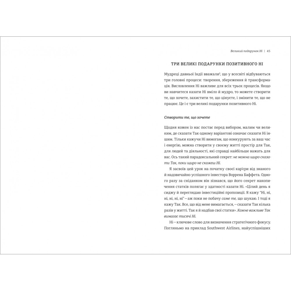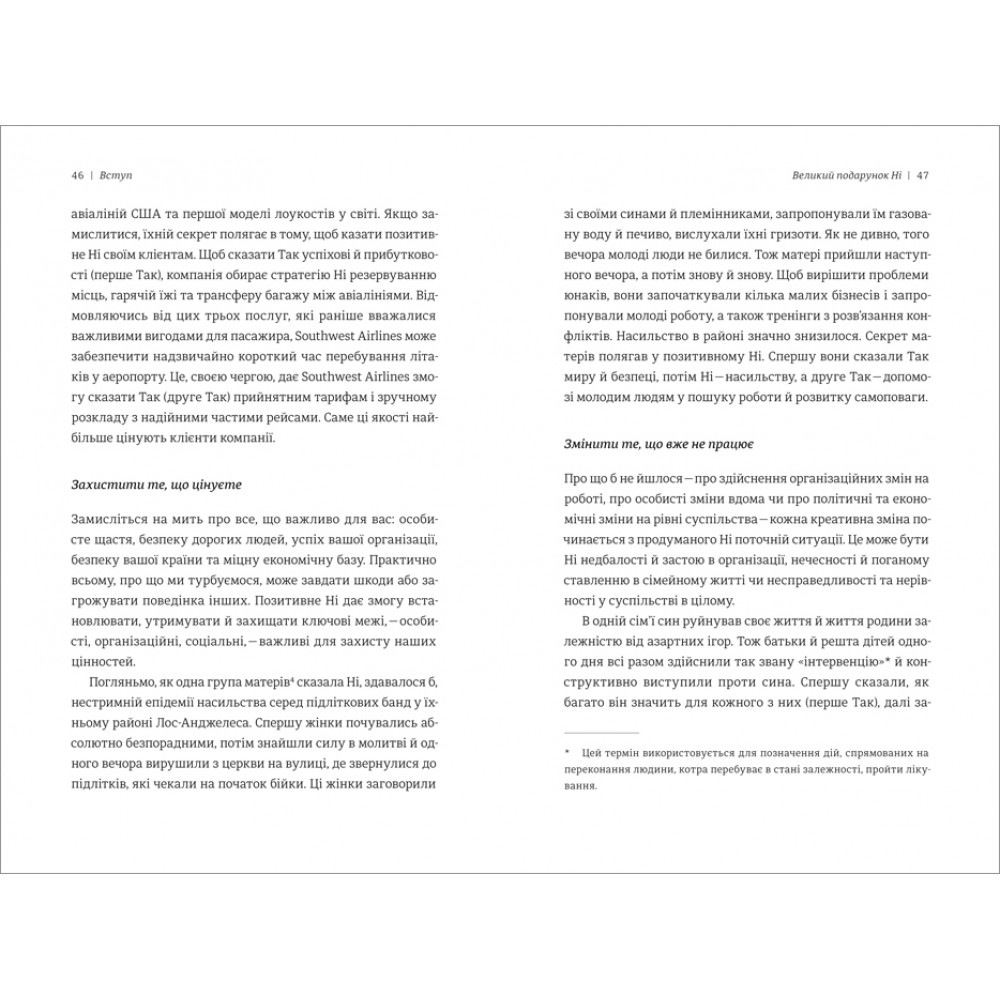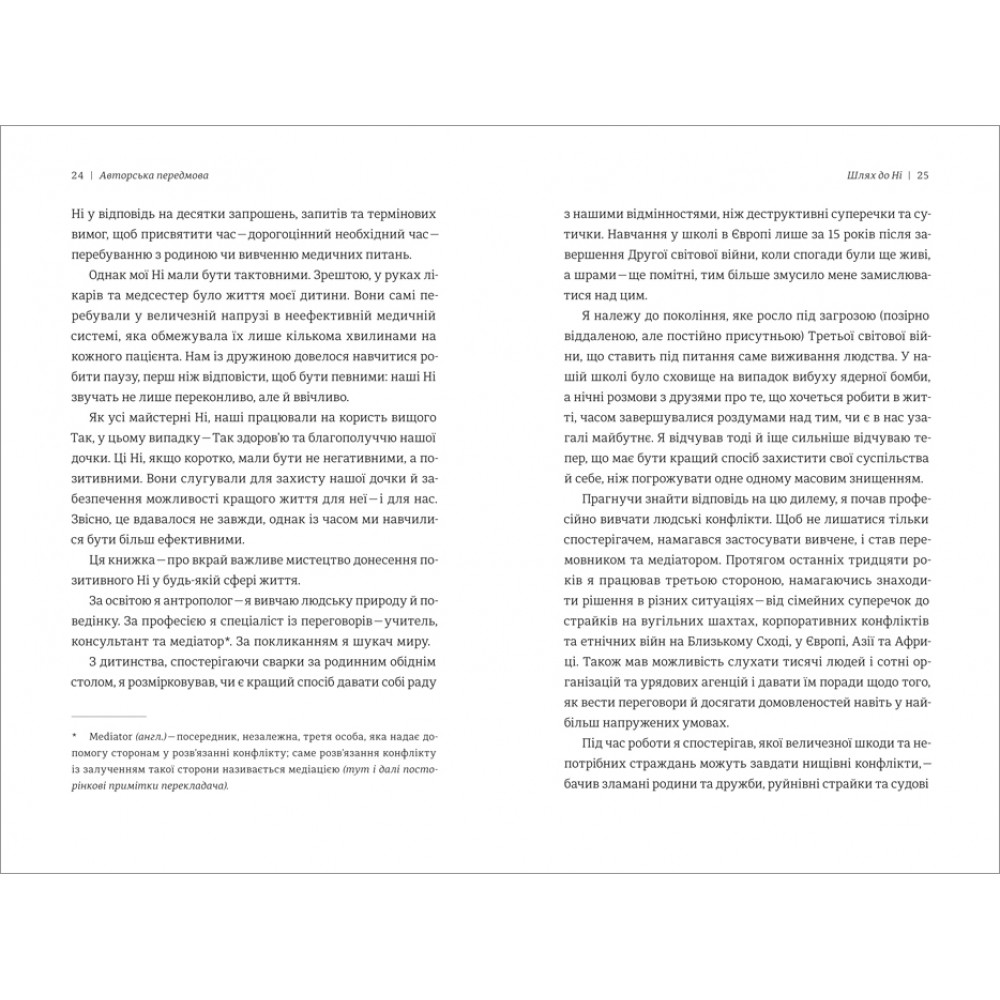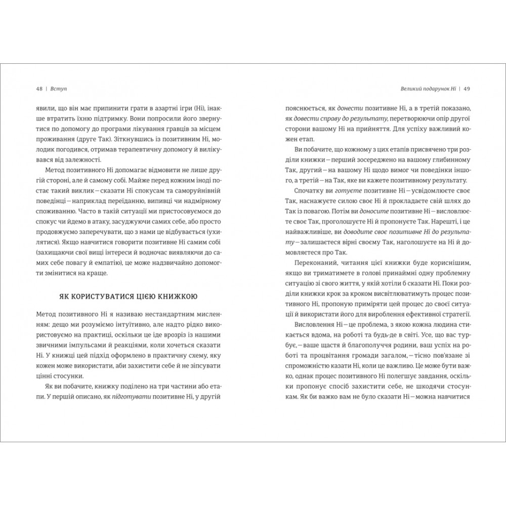 «Те, чи кажемо ми Ні та як ми це робимо, визначає якість нашого життя», — стверджує Вільям Юрі, фахівець у царині переговорів і автор бестселерів про вміння домовлятися. На сторінках цієї книжки він розповідає про Особливе — позитивне Ні, яке допомагає захистити себе та свої інтереси й водночас зберегти гарні стосунки з другою стороною. Політичні переговори, ведення бізнесу, суспільні справи, спілкування з рідними — мистецтво позитивного Ні гарантує успіх в усьому!